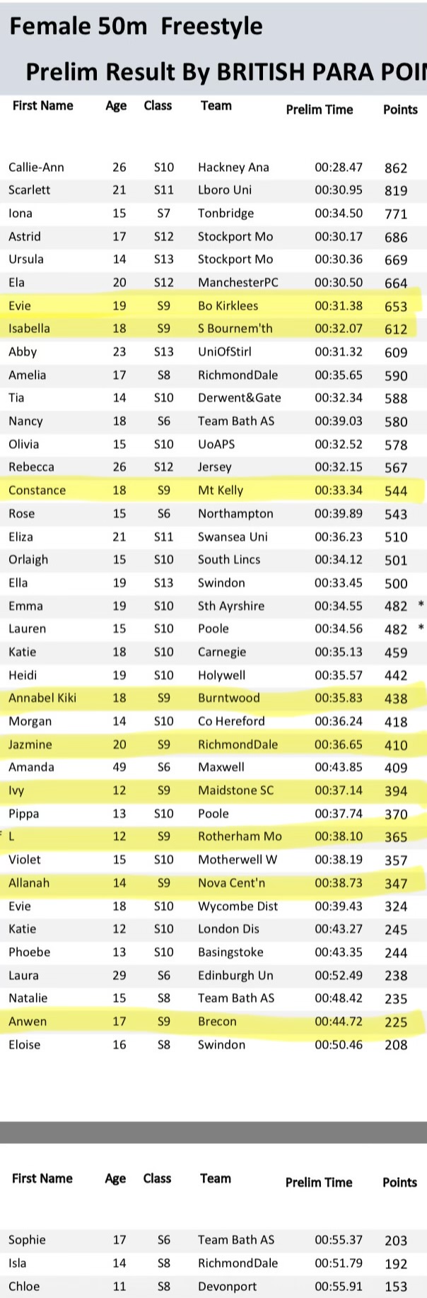 Here’s an example: If I swam closer to the S9 World Record than the faster S10 swimmer who beat me in our race, but wasn’t as close to the S10 World Record… I would get more para points – confusing I know!! But it essentially means I am not in competition with the other S9 swimmers, I am in competition with ALL the other para swimmers regardless of their classification! I assumed Swim GB would take the best swimmers from each classification S1-S14 to international competitions, but they don’t, they rightly take the ones who are closest to the World Record, the ones who have the most para points.