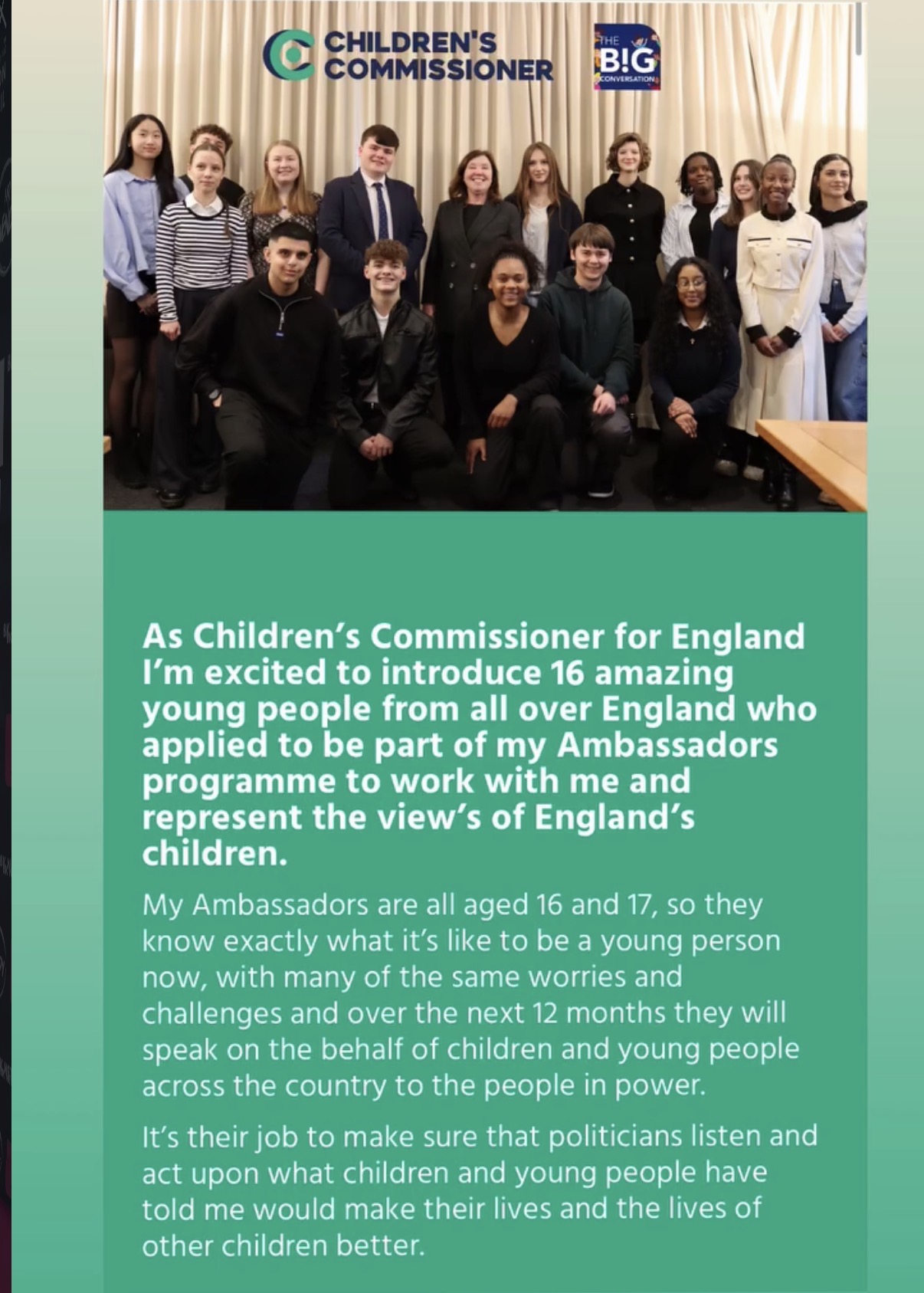 That’s what being a Youth Ambassador to the Children’s Commissioner enables… our voices are heard at the very top level of decision making.